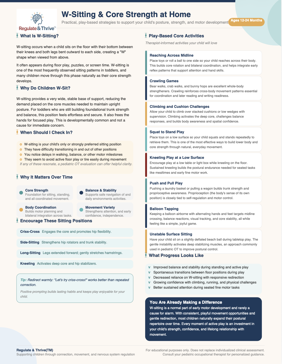 W-sitting is a common part of early development. With gentle guidance and consistent opportunities for movement, most children naturally build the strength and coordination they need.